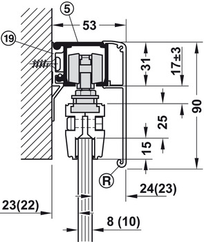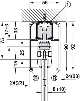 Category: Sliding door fitting, Häfele Slido R-Aluflex 80A, top running, for sliding doors with frame, floor to ceiling, ceiling installation and wall mounting, height adjustable