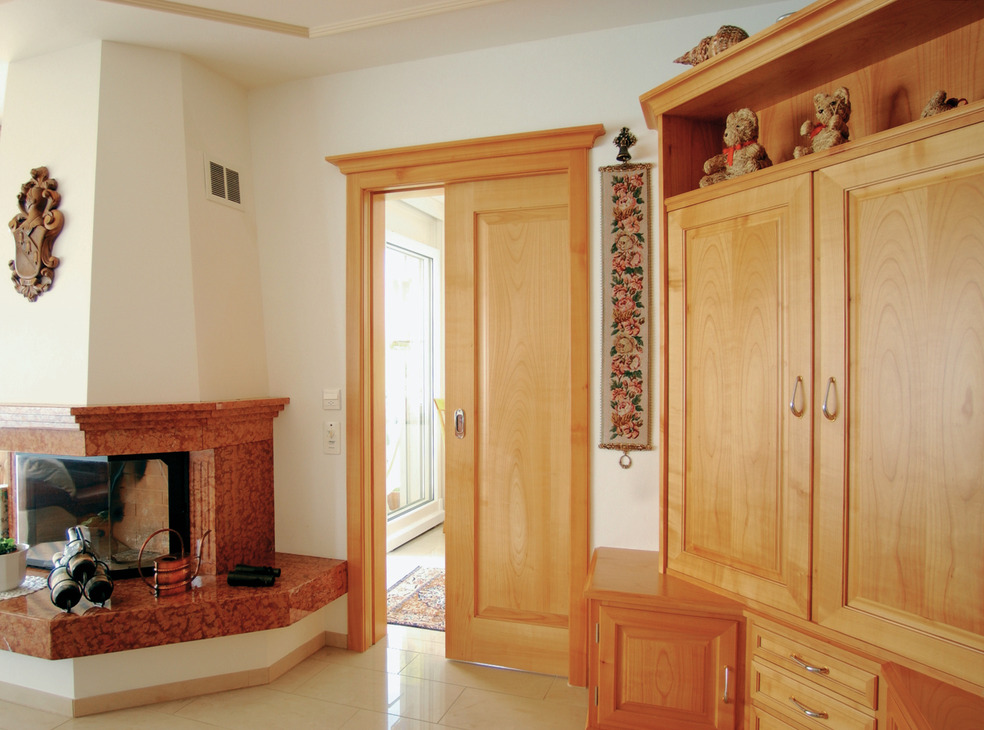 - Exposed part of wood header is laminated to match the color of the sliding track