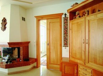 - Exposed part of wood header is laminated to match the color of the sliding track