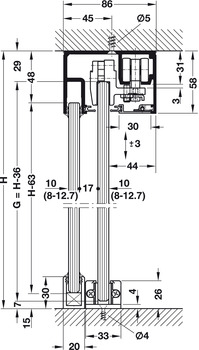 Category: Sliding door fitting, HAWA Porta 100 GW/GWF Synchro, set, Top Hung System, Synchro guide with cord
