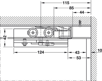 Category: Sliding door fitting, Hawa Porta 100 GW/GWF, set, for 1-leaf glass sliding doors, surface mounted or flush fitted in ceiling, for door weight up to 100 kg