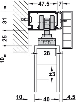 Hafele 941.00.111 Sliding Door Fitting, EKU Porta 60/100 H/HC, set for 1-leaf wooden sliding doors, door weight not more than (220 lbs) 100 kg, without running track