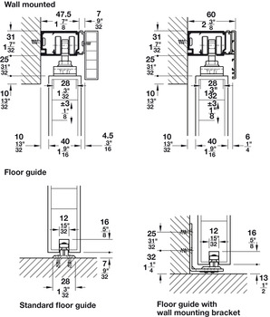 - Sliding Door Hardware, Hawa Divido 100 H / Porta 60/100 H/HC -Synchro, set