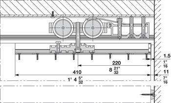 Hafele 942.56.002 Sliding Door Hardware, HAWA Junior 250/B, set Top Hung System, With 1 track buffer/1 wall buffer