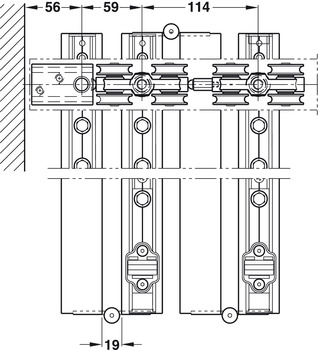 Bottom guide tracks must be used for Hawa Variofold systems. However, for systems with 2 doors on both sides and up to a system width of max. 3.6 m the bottom guide track is not required.Data Sheet