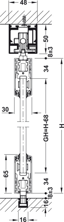 Product Title: Sliding Door Hardware, HAWA Aperto 60 GL, set, Sliding wall fitting, for up to 8 stackable glass sliding doors/1 hinged door, ceiling installation, door weights up to 60 kg, door heights up to 2,600 mm, door type E