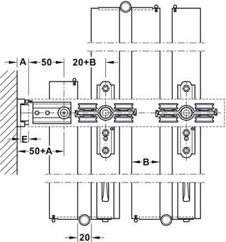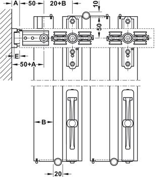 Hafele 943.55.006 Folding Wall Fitting, Slido Fold 100-T, Set Folding and access door fitting, corner and center suspension, for door weight up to 100 kg, Additional set for systems without bottom track