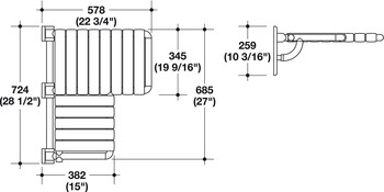Hafele 980.20.399 Folding Shower Seat, L-Shaped, 724 mm Width HEWI 801 Series, Pure white, projection left