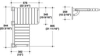 Hafele 980.20.699 Folding Shower Seat, L-Shaped, 844 mm Wide HEWI 801 Series, Pure white, projection right
