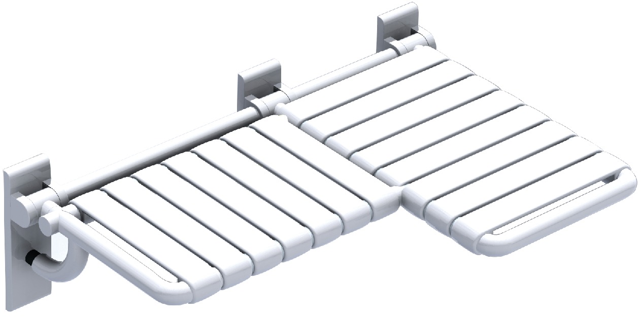Product Title: Folding Shower Seat, L-Shaped, 844 mm Wide, HEWI 801 Series, Pure white, projection right