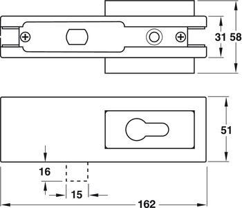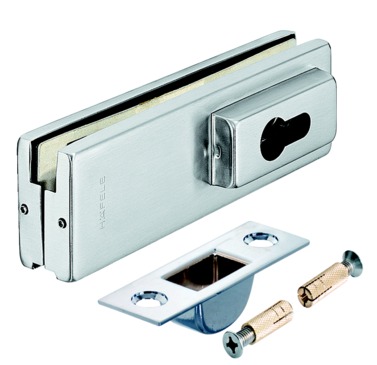 Hafele 981.00.400 Corner Door Patch Lock, for euro profile cylinder, for 10-12.7mm thick glass, matte stainless steel cover, 162 x 51mm