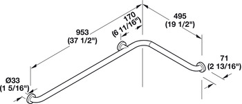Category: Grab Bar, L-Shaped, 953 x 495 mm, HEWI 801 Series, Pure White