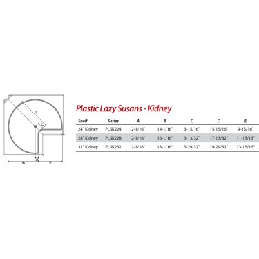 - Description: 28" Diameter Kidney Plastic Lazy Susan Set with Twist and Lock Adjustable Pole. Includes 2 Shelves, 1 Mounting Pole, Mounting Hardware and Instructions