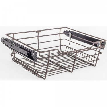 - Description: Closet Pullout Basket 16"D x 17"W x 6"H. Heavy Duty Wire Construction and 100 lb Rated Slides. Easily Installs in 32 mm Applications. Finish:. Dark Bronze