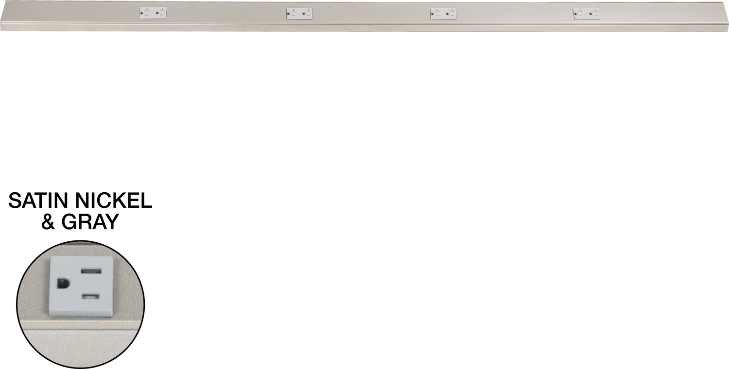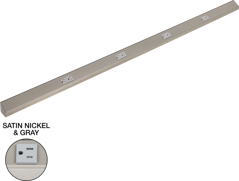 - Description: 72" TR Series Angle Power Strip, Satin Nickel Finish, Grey Receptacles