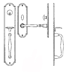 - Item Description: Entrance Handle Set - Complete single cylinder set for 2 1/4" door For American mortise lock Back set: 2 1/2'' or 2 3/4" Overall length 420mm approx