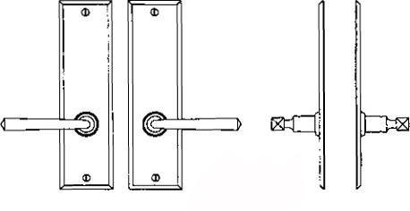 - Item Description: Interior Escutcheon Set - Complete privacy set All functions are packaged with the appropriate fastening devices Passage function: Latch included Privacy function: Privacy latch and push pin included Dummy functions: Full or Single dummy plates included Back set: 2 3/8" or 2 3/4" This Escutcheon will cover pre-drilled doors (2 1/8" hole)